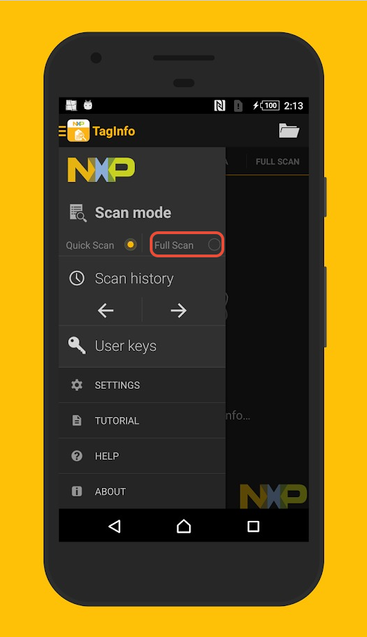 Once Full-scan is enabled, you’ll be asked to tap the tag on your phones NFC reader.