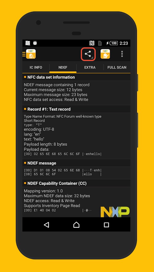 Back on the “Full Scan” Tab, click the share button to send the read as a text file.